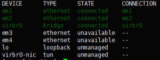 nmcli d 명령을 사용해 이더넷 장치명과 연결 여부를 확인할 수 있다.
