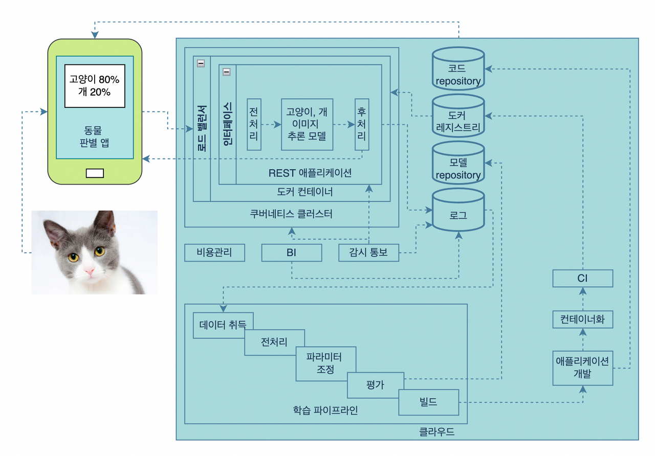 머신러닝을 효과적인 프로덕트나 서비스의 형태로 활용하기 위해서는 시스템이 모델을 포함해야 한다. 머신러닝 모델을 로컬 PC에서만 추론할 수 있게 구성하는 것은 도움이 되지 않으며, 다른 소프트웨어들과 조합해 모델이 호출되는 구조를 갖춰야 한다.